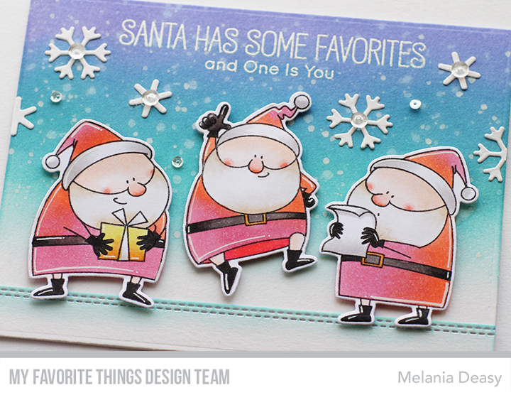 Hi all! Today I want to share my card for My Favorite Things August Vault Countdown Day 3. I play with cute stamp set called Jingle All the Way. It's full of adorable Santas, Christmas tree, reindeer and kid images and they are so fun for Christmas!